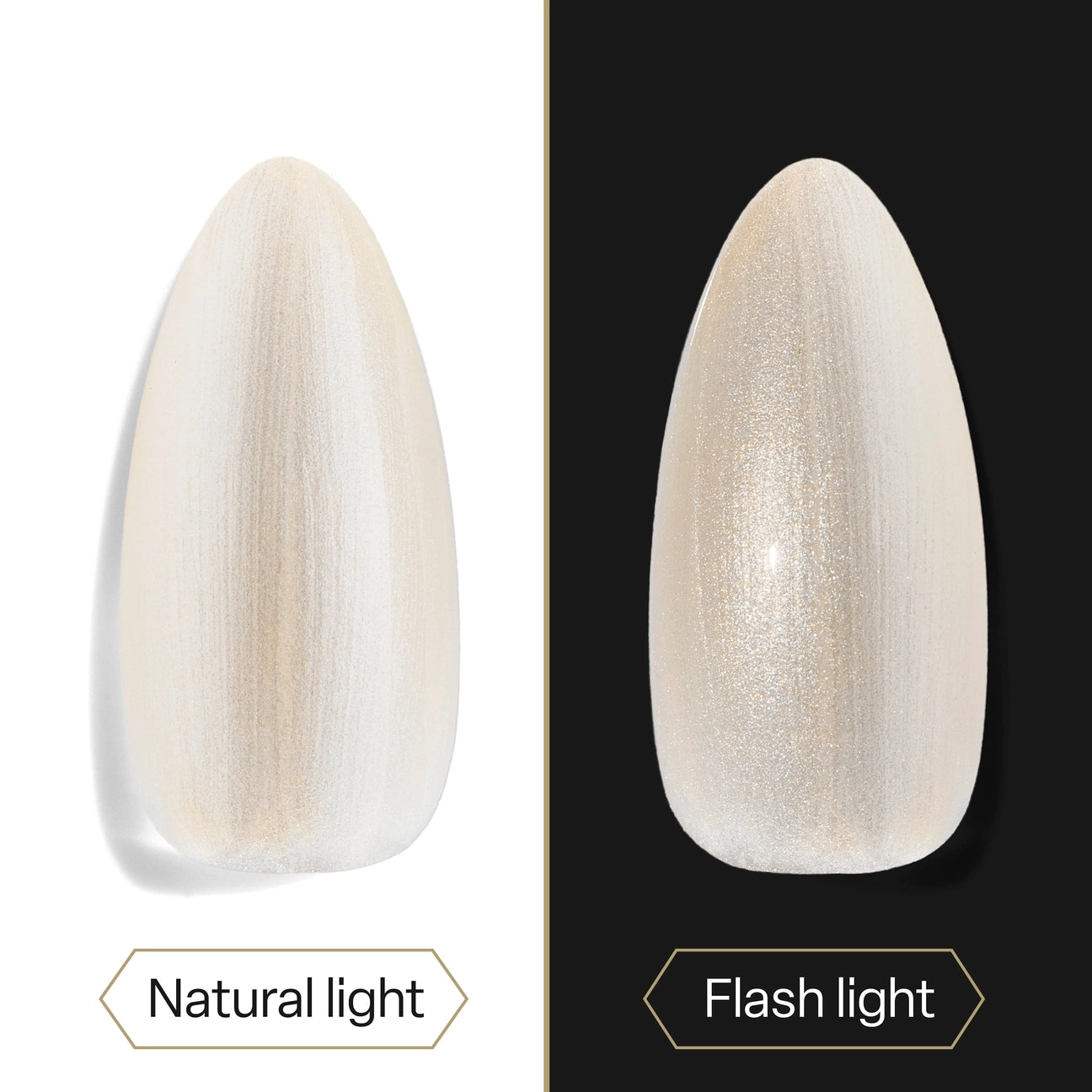 Astral Gel Couleur is a collection of 40 shades in 4 light-refracting, otherworldly finishes—Flash Glitter, Pearlescent, Velvet, and Shimmer Cat Eye. These streak-free, self-leveling formulas leave a unique energetic signature on the nail, empowering you to create looks that resonate on a spiritual level.