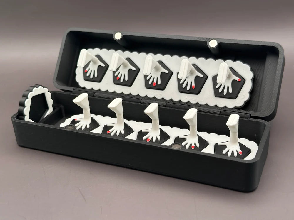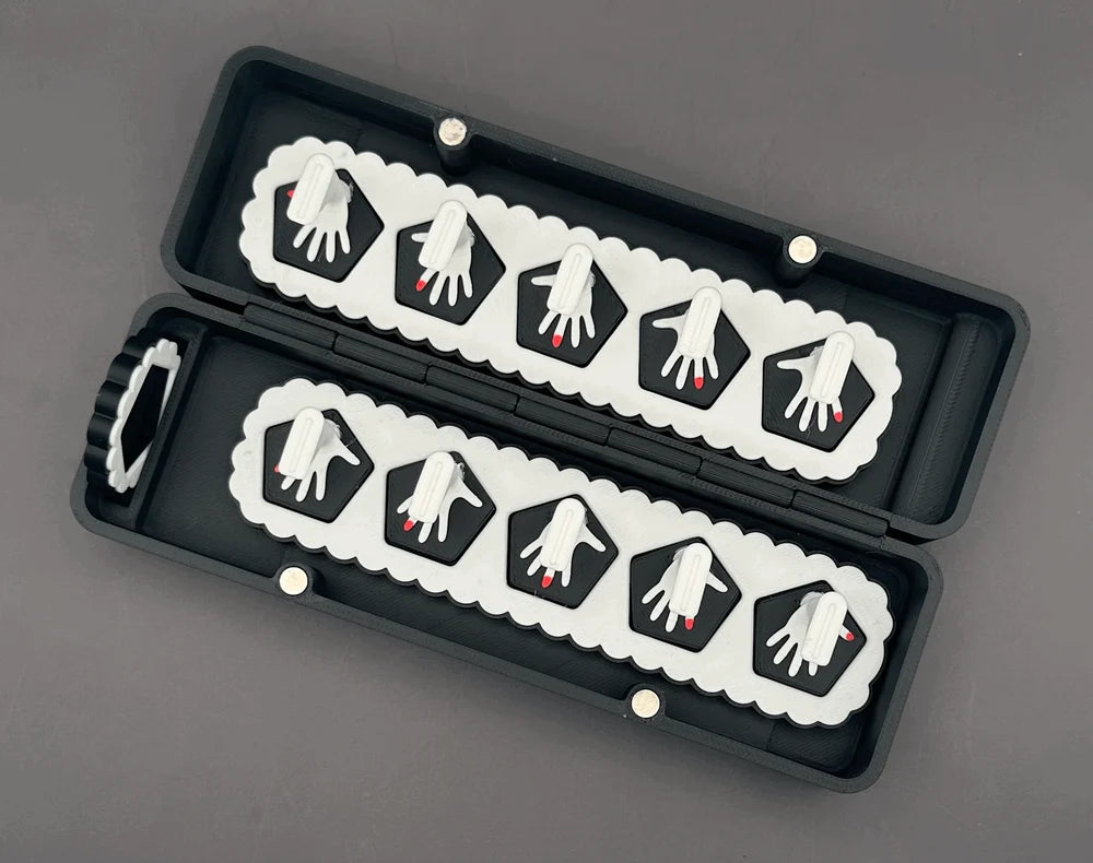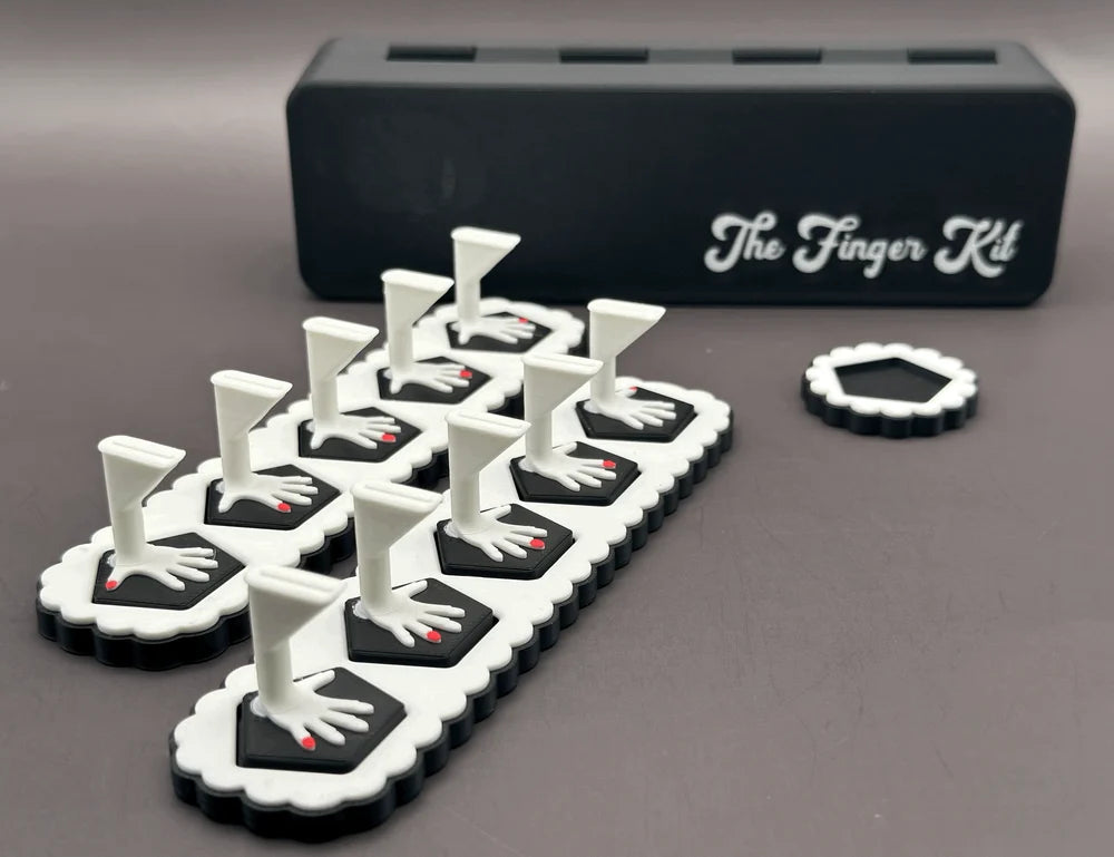 The original Give Me The Finger stands for press on nails! Includes: 10 individual stands, each marked with easy to understand hands to identify which nail you are working on. 2 bases, to keep each set of five stands together. 1 working base, to give you a better grip on the nail you have in your hand. Carrying/Storage case, to keep everything safe, even with a set of nails on them!