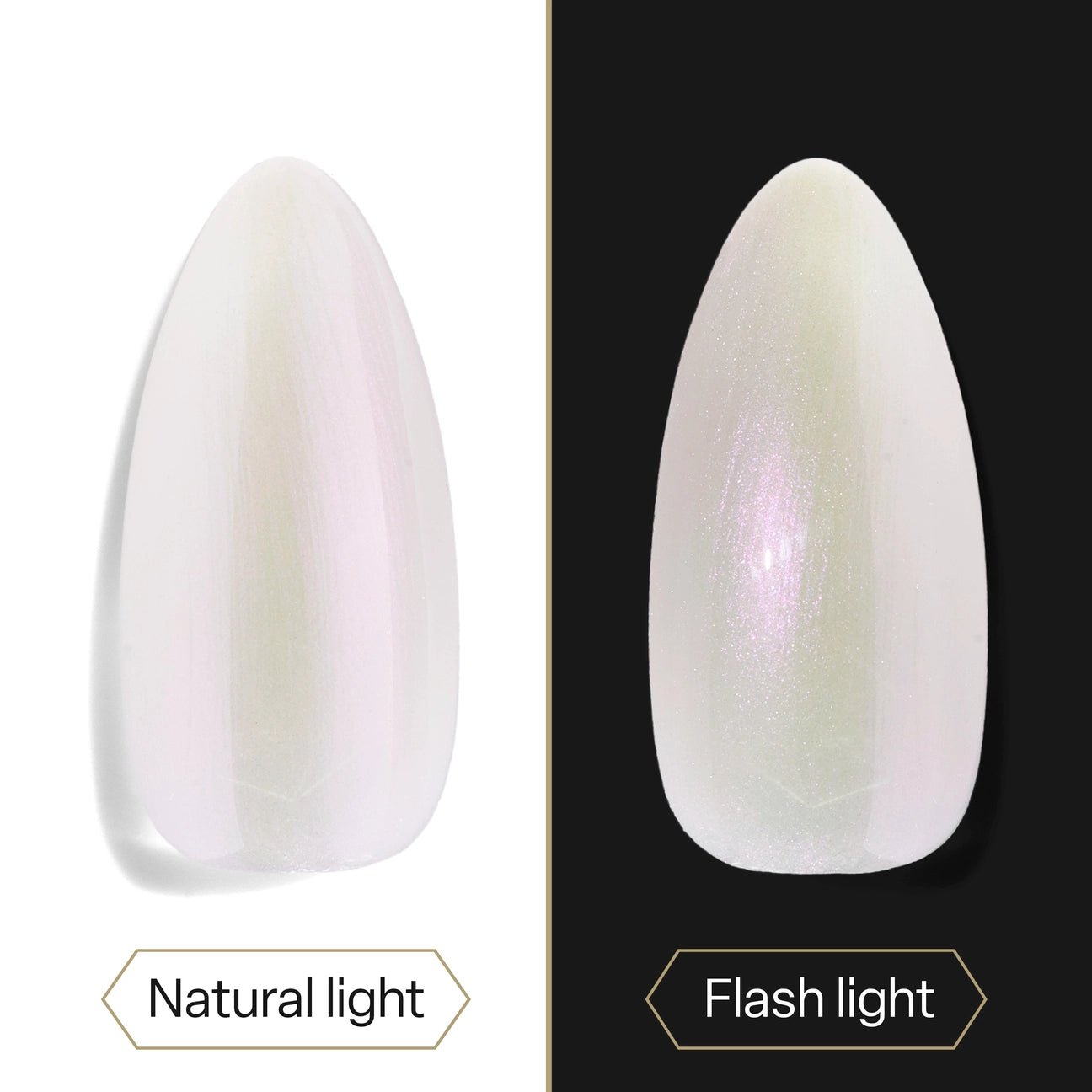 Astral Gel Couleur is a collection of 40 shades in 4 light-refracting, otherworldly finishes—Flash Glitter, Pearlescent, Velvet, and Shimmer Cat Eye. These streak-free, self-leveling formulas leave a unique energetic signature on the nail, empowering you to create looks that resonate on a spiritual level.