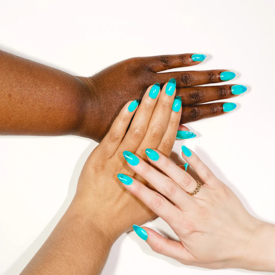 This gel color is an aquamarine blue jelly color. A jelly color means that it is a completely transparent color.