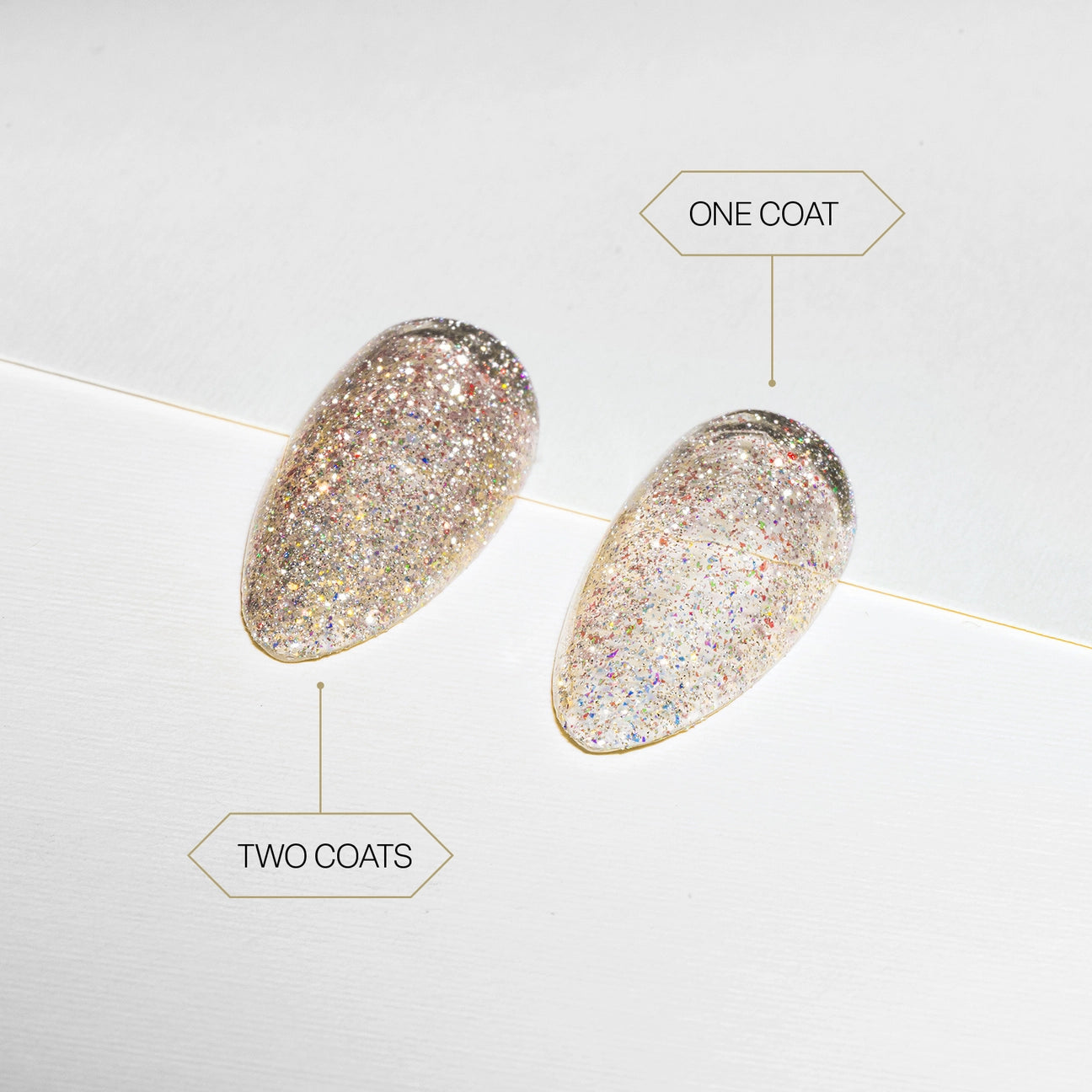 Astral Gel Couleur is a collection of 40 shades in 4 light-refracting, otherworldly finishes—Flash Glitter, Pearlescent, Velvet, and Shimmer Cat Eye. These streak-free, self-leveling formulas leave a unique energetic signature on the nail, empowering you to create looks that resonate on a spiritual level.