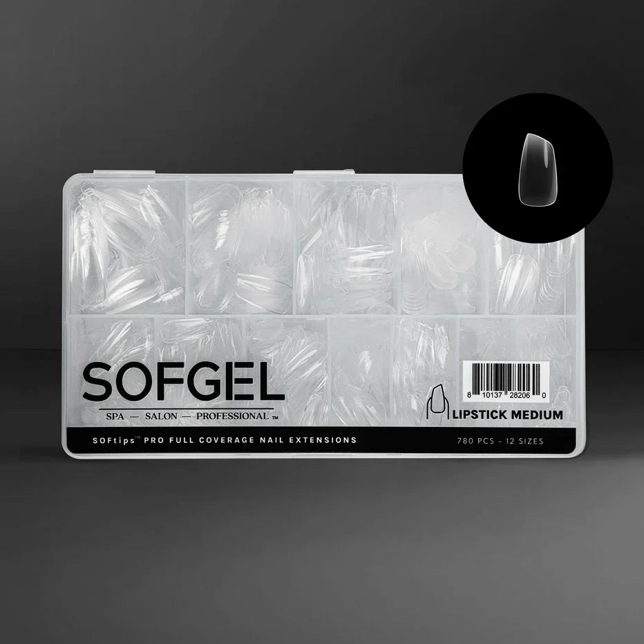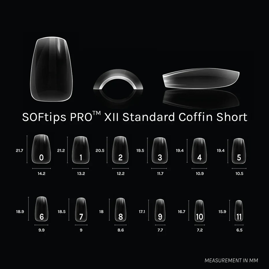 Premium quality, full coverage soft gel tips for natural & lightweight nail extensions. Explore the SOFTIPS PRO XII™ collection of Standard Style tips- pre-shaped tips featuring a thin, flexible base that can be molded to fit the unique contours of your natural nails- flat or rounded. XII tip shapes are 'natural-style' in shape- lower apex, less of a c-curve. Comes in a 12-size spread.