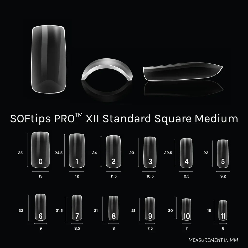 Premium quality, full coverage soft gel tips for natural & lightweight nail extensions. Explore the SOFTIPS PRO XII™ collection of Standard Style tips- pre-shaped tips featuring a thin, flexible base that can be molded to fit the unique contours of your natural nails- flat or rounded. XII tip shapes are 'natural-style' in shape- lower apex, less of a c-curve. Comes in a 12-size spread.