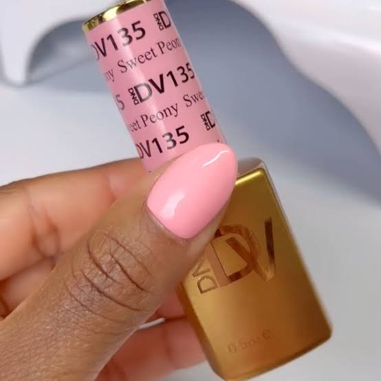 All Colors from DND come in DUOS - GEL/LACQUER. Sweet Peony DIVA #135 (warm apricot pink) — First dates, glass vases filled with peonies, and damp hands clasped under the diner’s table. Recreate a carbonate copy of that bubbly feeling with this muted dusk-pink